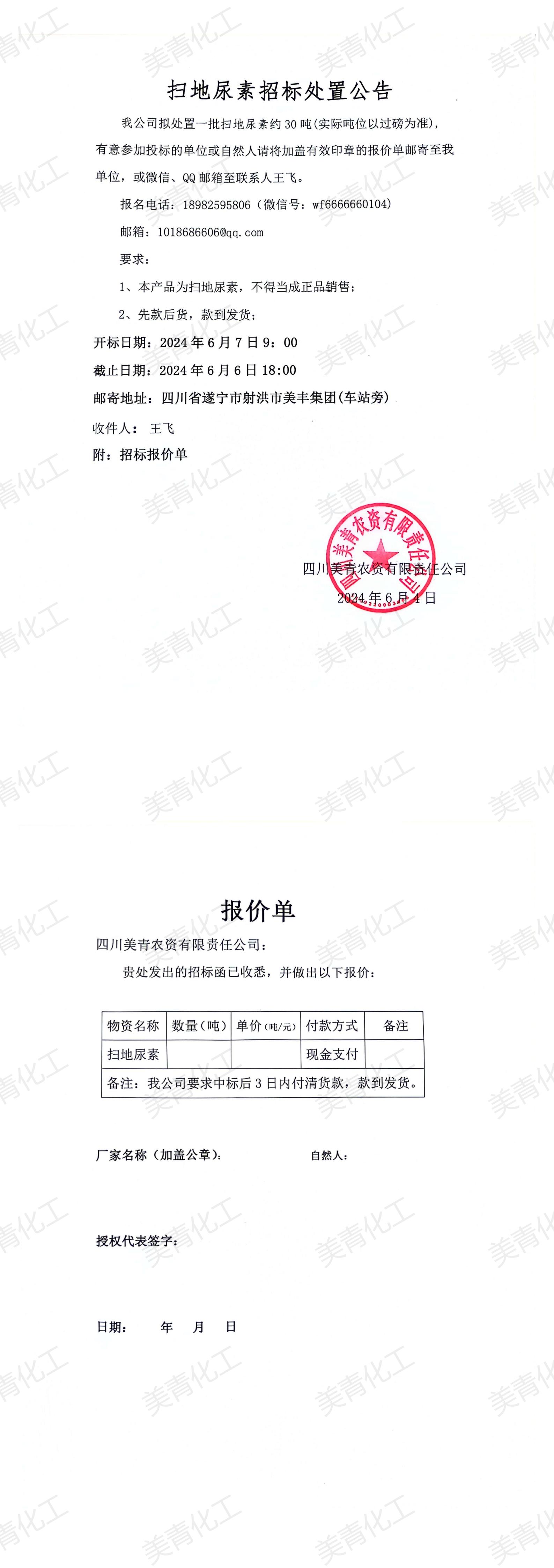 掃地尿素招標處置公告