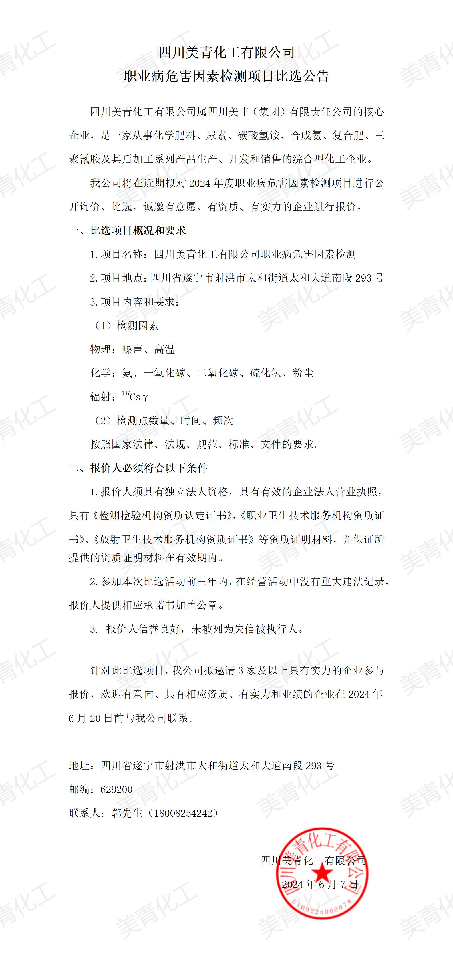 職業(yè)病危害因素檢測(cè)項(xiàng)目比選公告